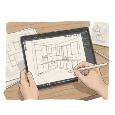 Berikan kami ukuran sebenar dapur anda atau lebih mudah, biar kami datang ke rumah anda untuk mengukur.